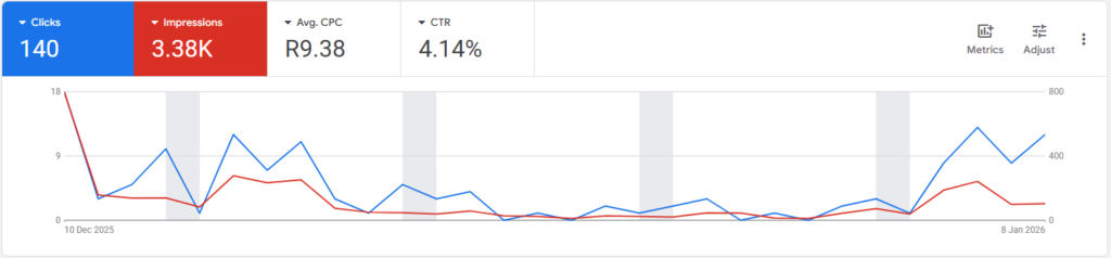 I manage Google Ads campaigns for small to medium businesses with monthly ad budgets between R3000 – R15 000. I check campaigns daily instead of set and forget, and I optimize based on actual performance data – not guesses.